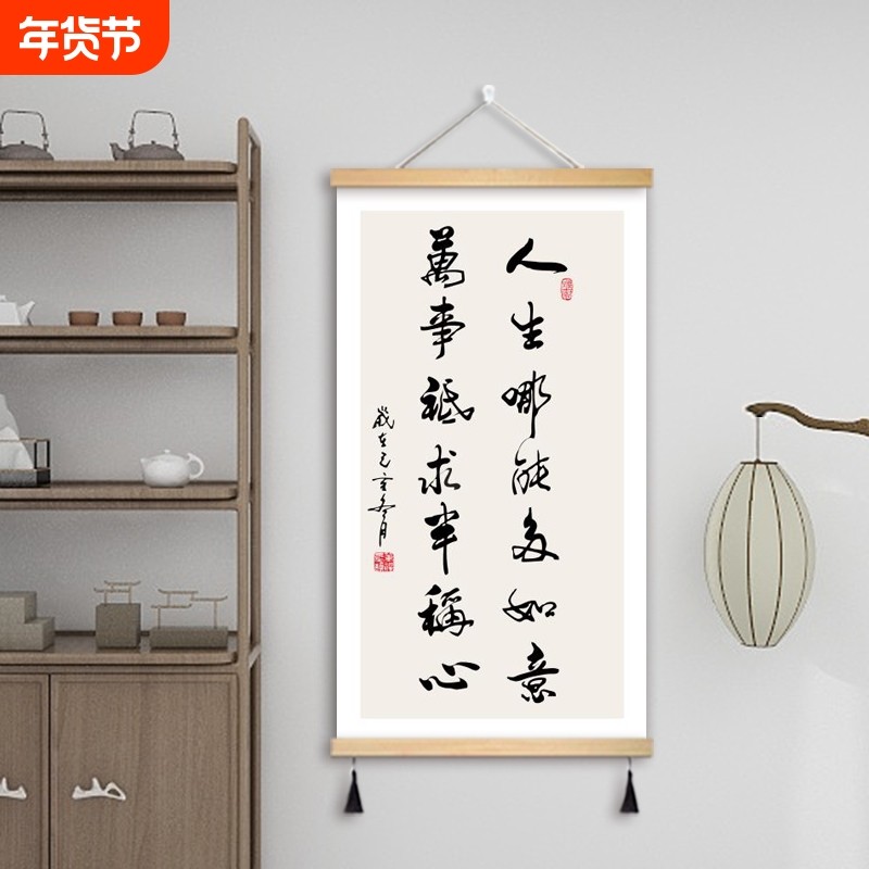 知行合一字画玄关卷轴挂画办公室墙壁画新中式书房茶室书法装饰画