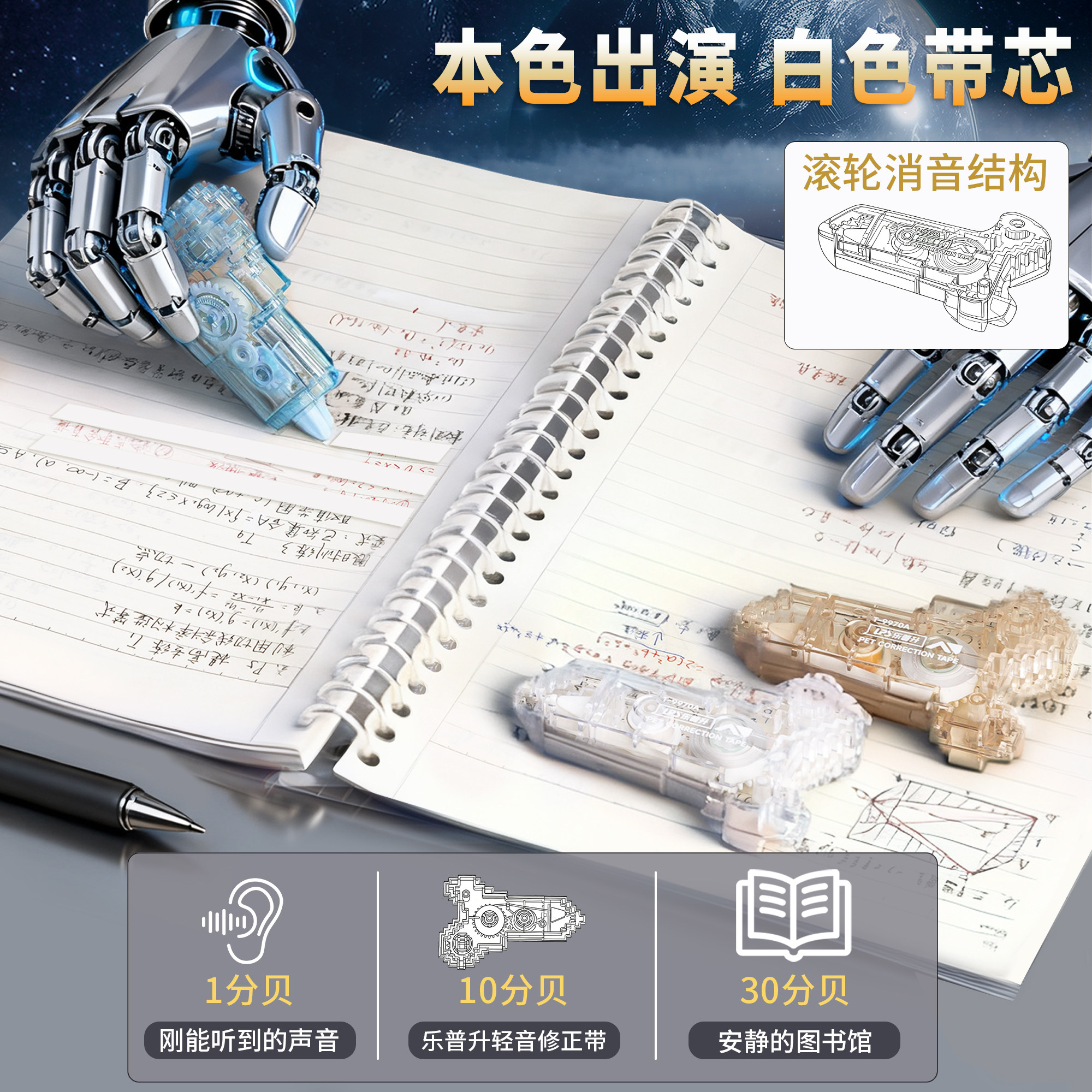 乐普升修正带小学生专用修正带黑科技暗藏玄机可玩涂改带初中生专用星舰可拼接积木手枪造型时空高颜值改正带