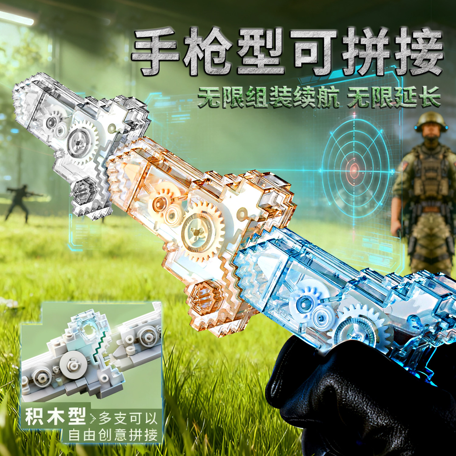 黑科技暗藏玄机可玩 手枪造型 可玩可拼接积