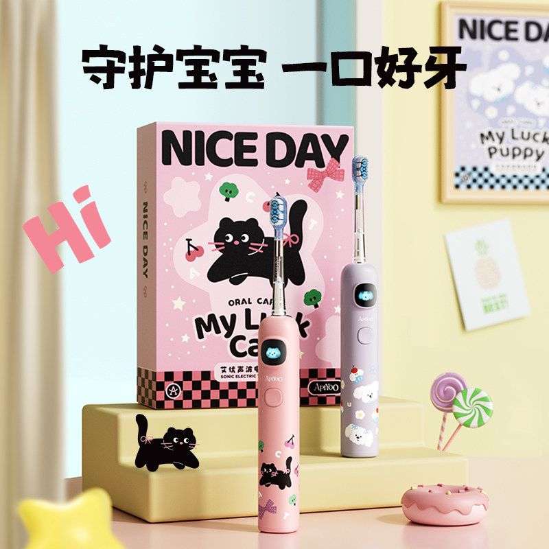 艾优儿童电动牙刷3-6-12岁以上女孩童宝宝全自动声波软毛圣诞礼物