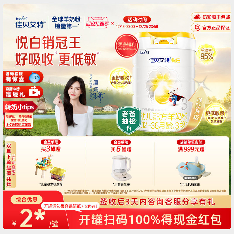 新国标荷兰进口佳贝艾特婴幼儿羊奶粉悦白3段升级OPL低敏好吸收