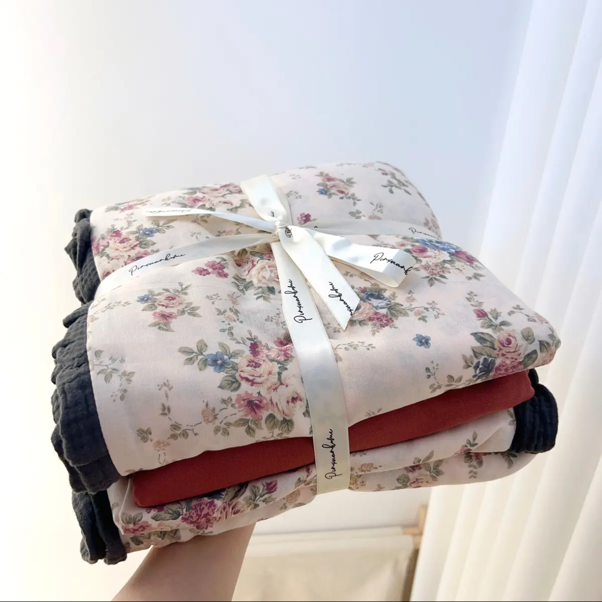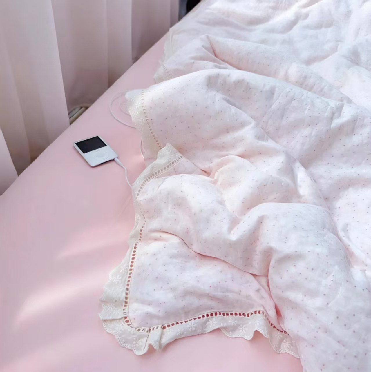 A类全棉双层纱皱皱边四件套纯棉纱布学生三件套被套床单床上用品