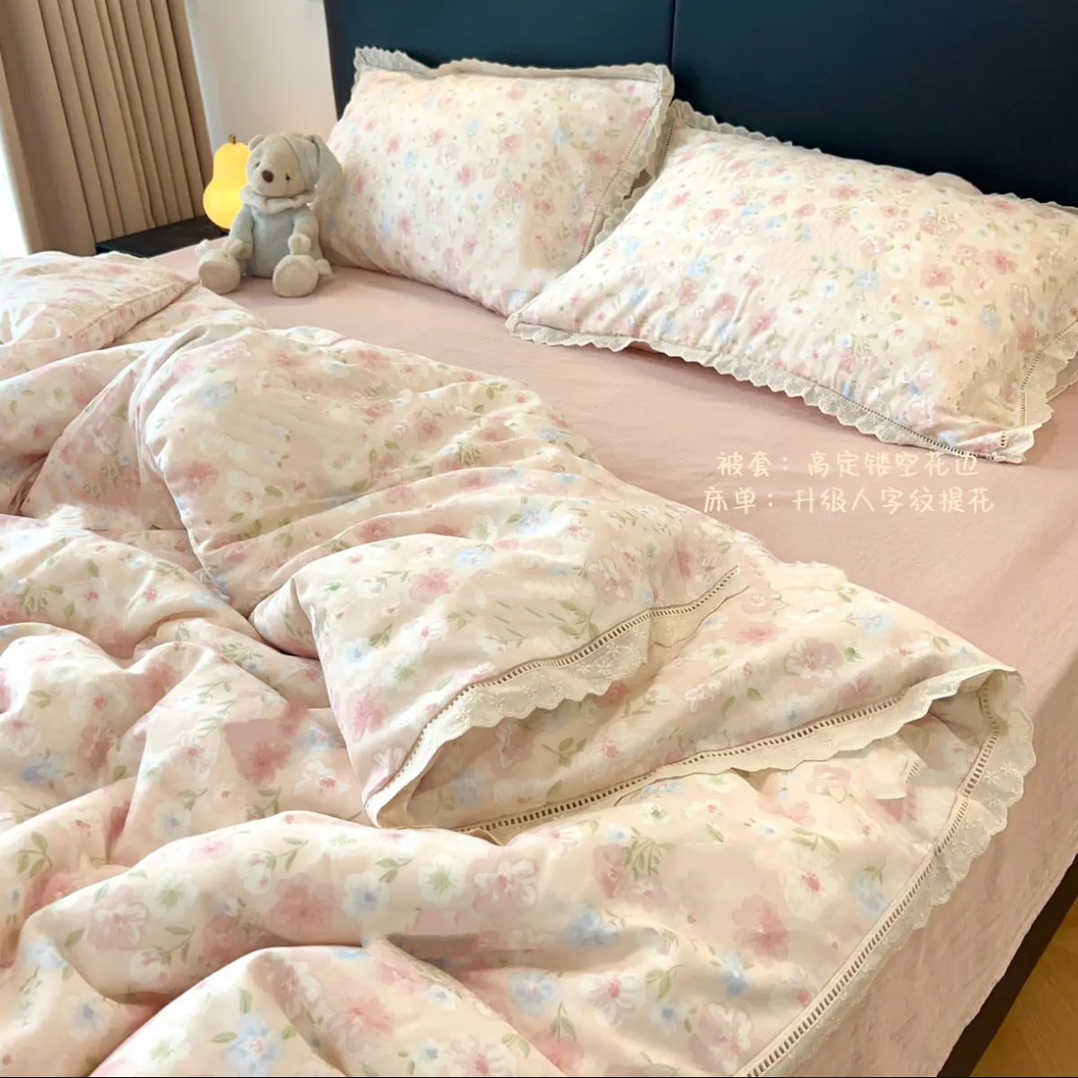 A类双层纱床上四件套纯棉全棉新款田园床单件被套被罩宿舍三件套4