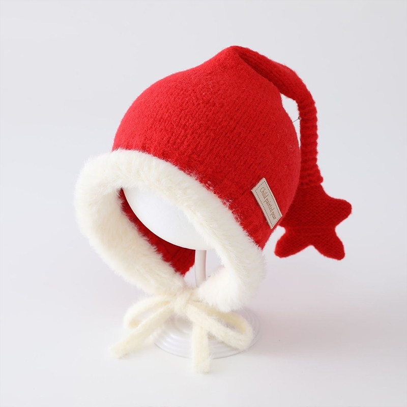 儿童红色帽子秋冬季保暖针织护耳毛绒帽男婴女宝宝防风新年毛线帽