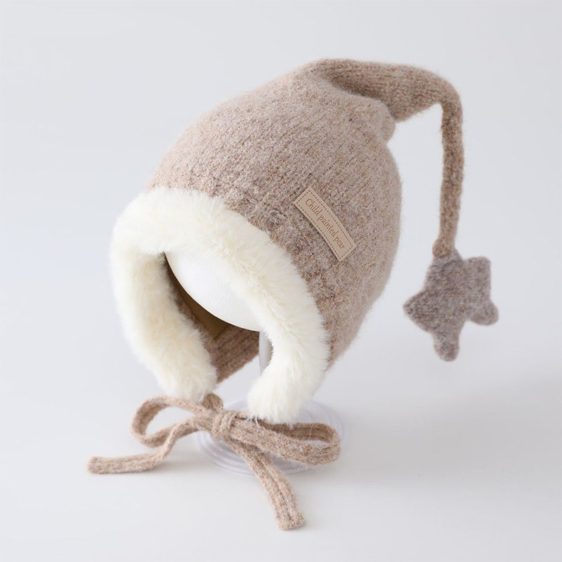 十月结晶粒粒阳光婴儿帽子一体加厚帽子秋冬季保暖护耳帽宝宝冬帽