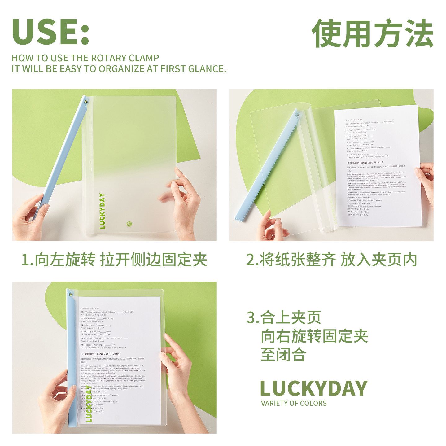 三年二班 旋转文件夹a4资料夹小学生专用试卷夹开学必备好物a4纸收纳夹抽杆夹资料夹文件袋活页夹整理夹