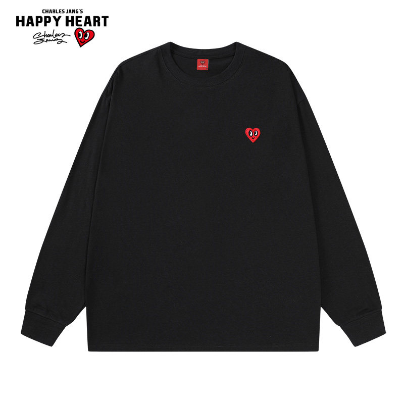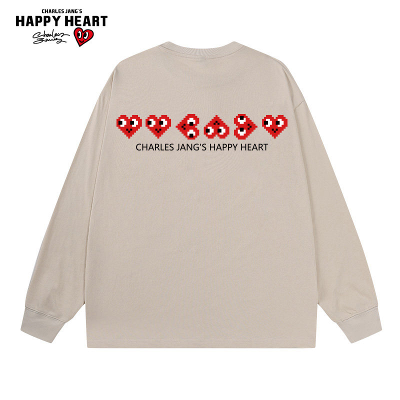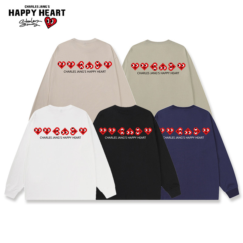 查尔斯桃心 长袖T恤男春秋季纯棉2025新款宽松爱心印花内搭打底衫