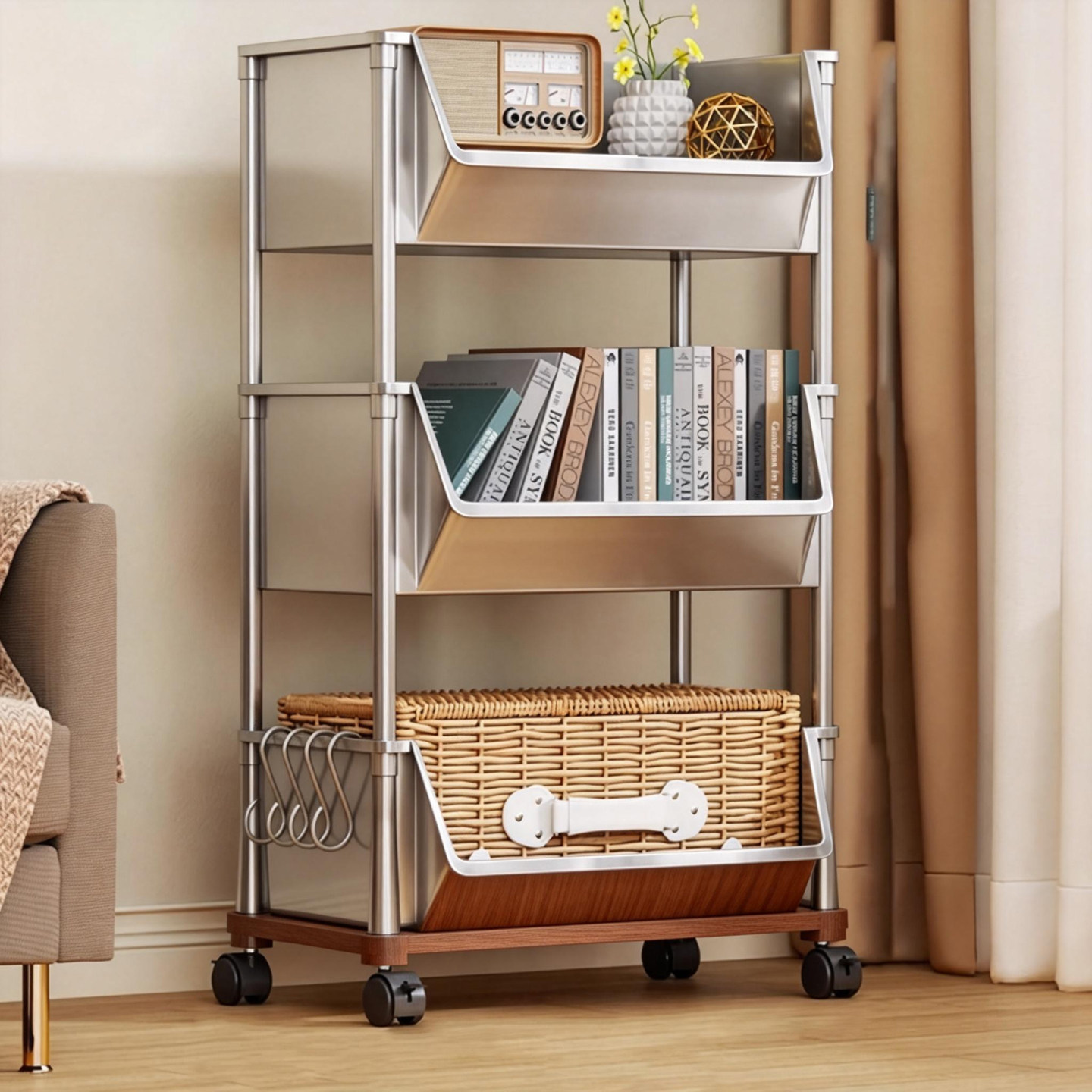 可折叠零食置物架落地家用客厅简易书架带轮儿童玩具收纳架小推车