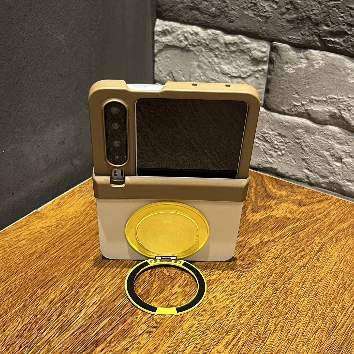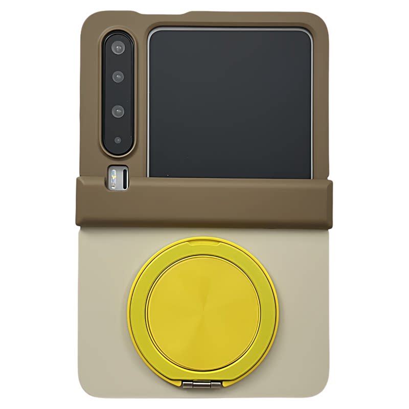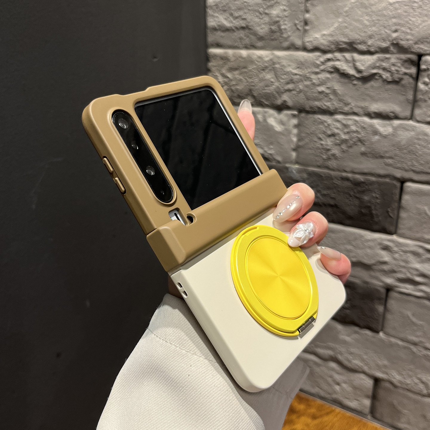 【带支架】中轴拼色深棕古董白圆形支架适用华为PuraX手机壳米mixflip2时尚razr60ultra翻盖防摔女荣耀Vflip2