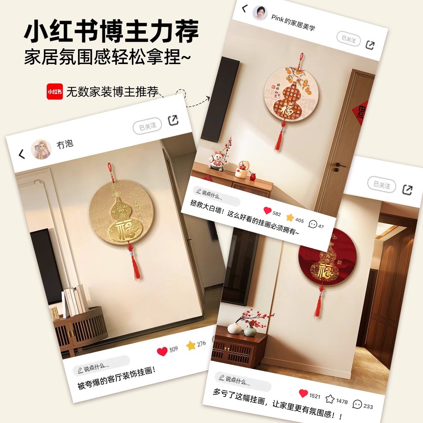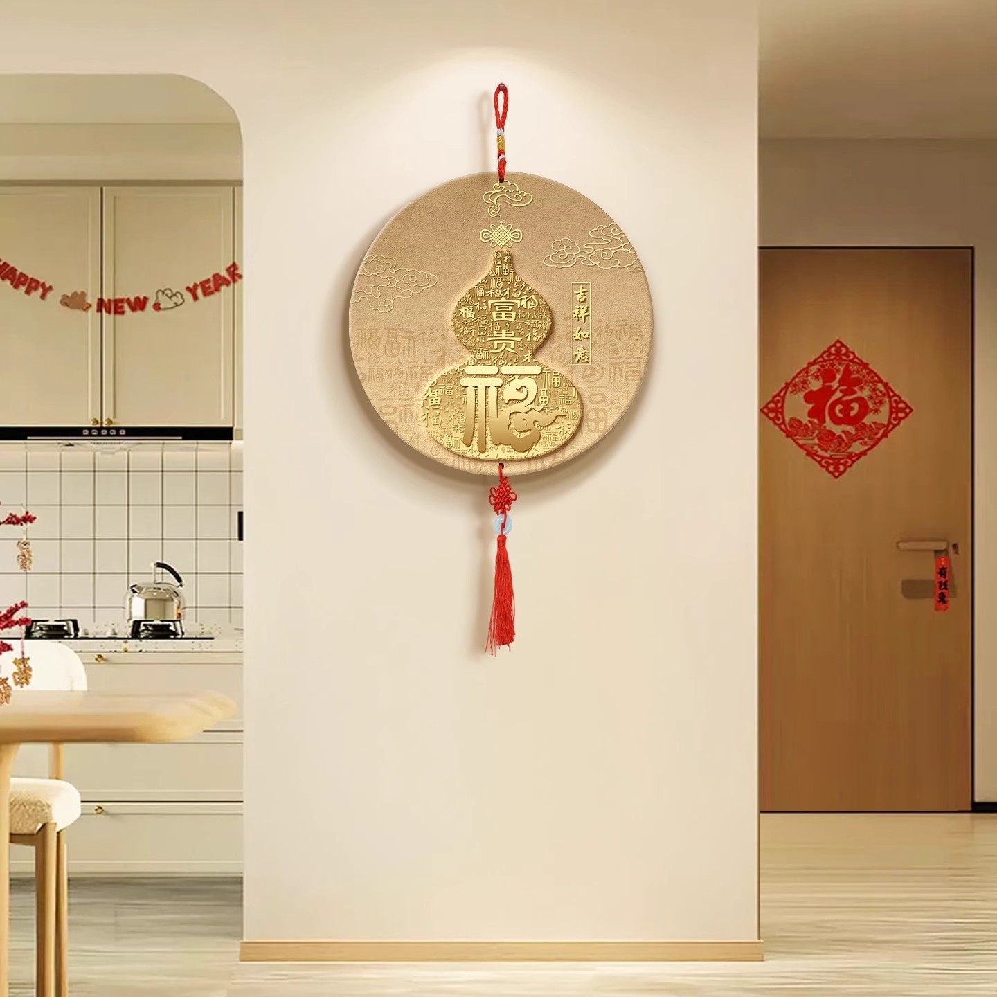 葫芦圆形挂饰中国结客厅电视背景墙装饰画新中式福字挂画餐厅水晶