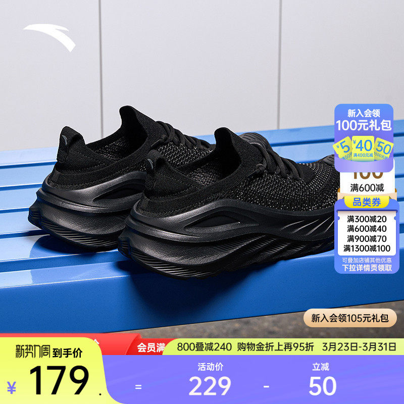 【王一博同款】安踏冠军乘风2代厚底缓震男子黑色跑鞋912615523A