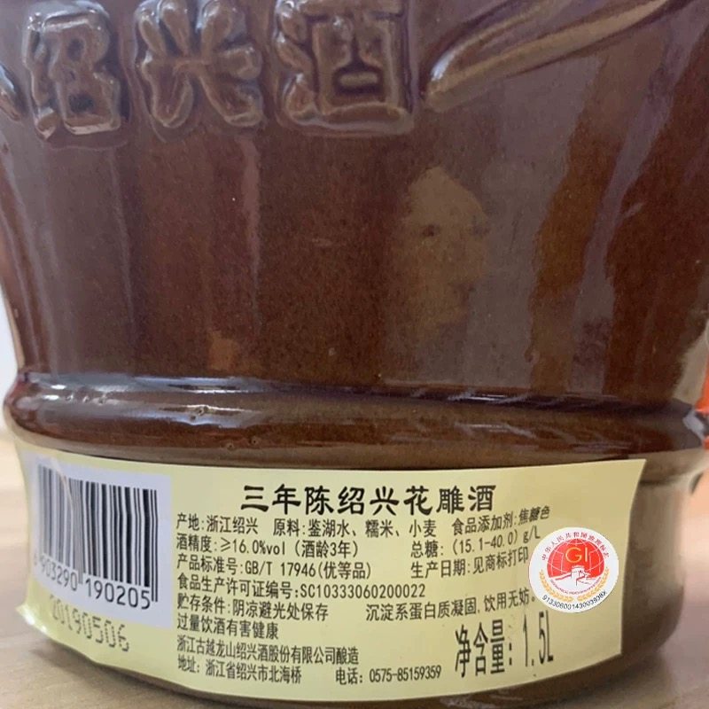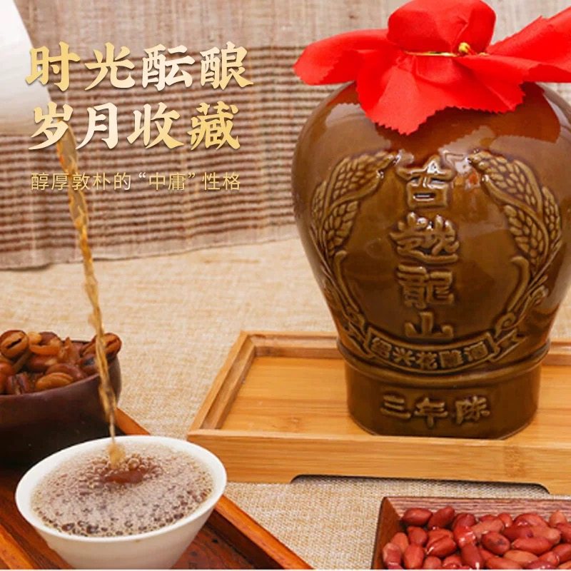 古越龙山绍兴黄酒1.5L陶坛三年陈糯米花雕酒16度3斤装坛装整箱
