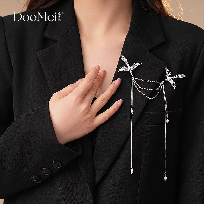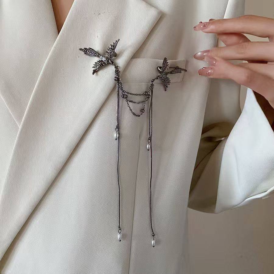 新中式飞鸟胸针高端精致时尚小众设计国风流苏胸花国潮民族风配饰