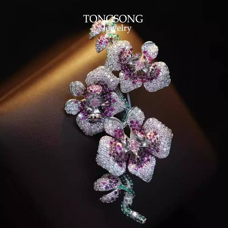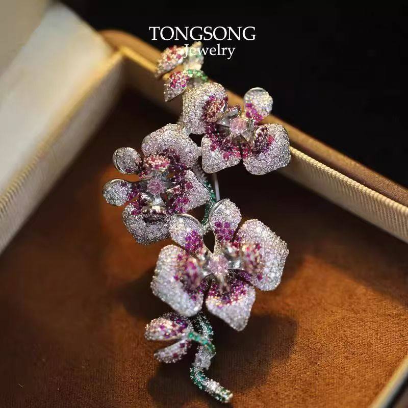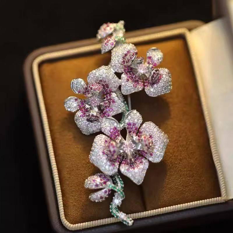 绯梦蝶影璀璨微镶锆石蝴蝶兰山茶花胸针奢华大衣优雅西装配饰胸花