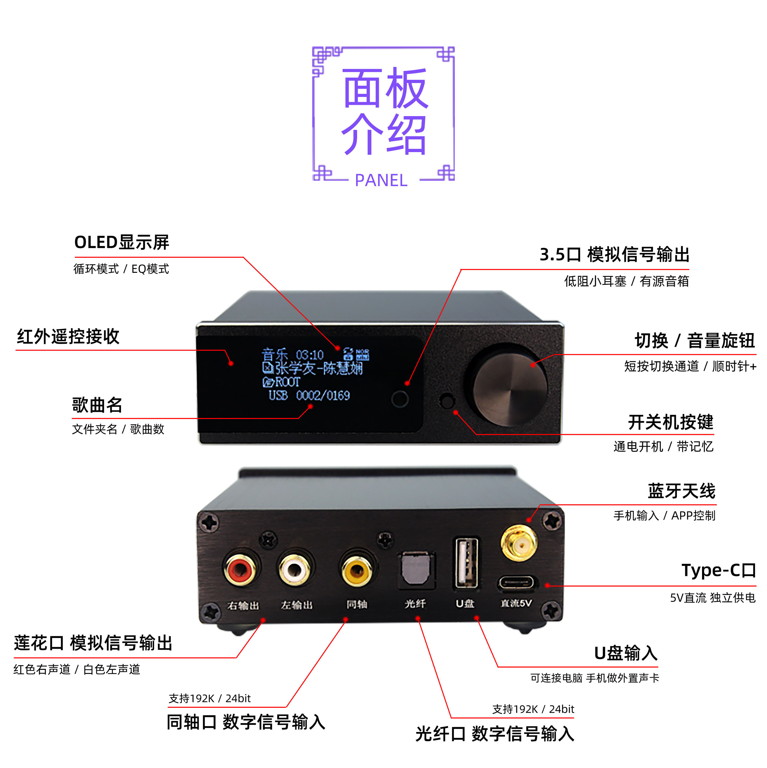 小影M10 同轴光纤输入 U盘无损播放 双es9028解码器 蓝牙数字转盘