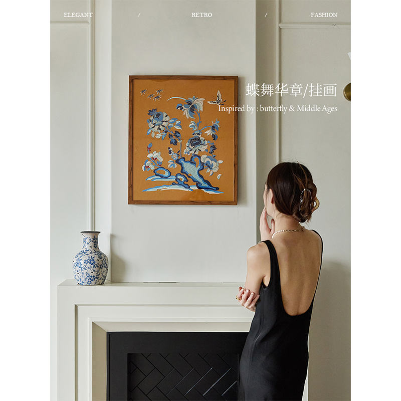 【国补再减15%】蜡笔派蝶舞华章挂画法式新中式装饰客厅玄关挂毯