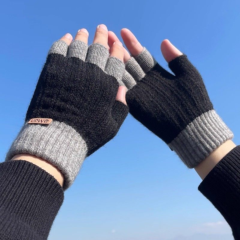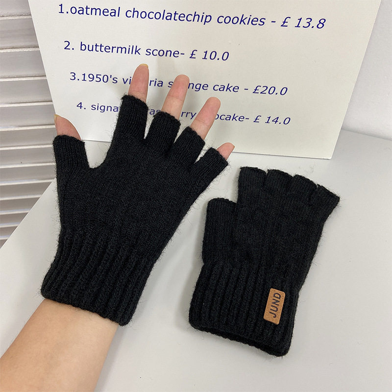露二指骑行手套保暖冬季触屏韩版毛绒防寒漏指骑车办公写字神器