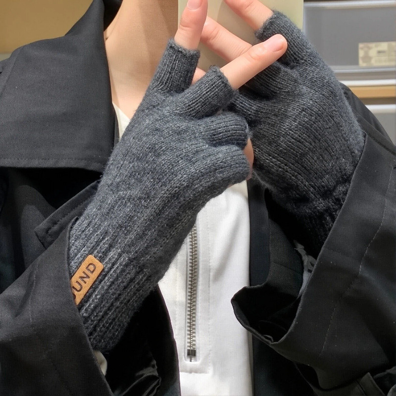 半指手套男露指冬季半截无指骑行开车加厚毛线针织漏指头防寒保暖