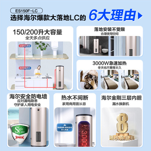 海尔电热水器落地式200升150L竖立式商用理发店大容量储水式家用