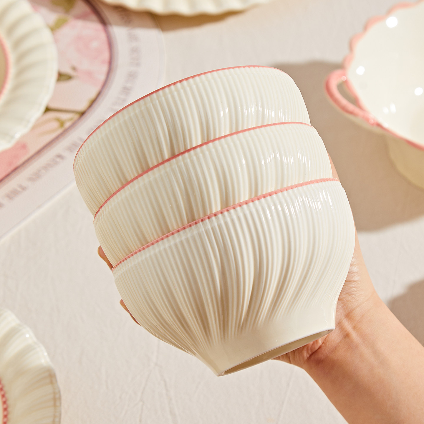 陶瓷家用盘碗5个菜盘1汤碗圆盘子大汤碗水果盘饭盘碗碟子可微波炉