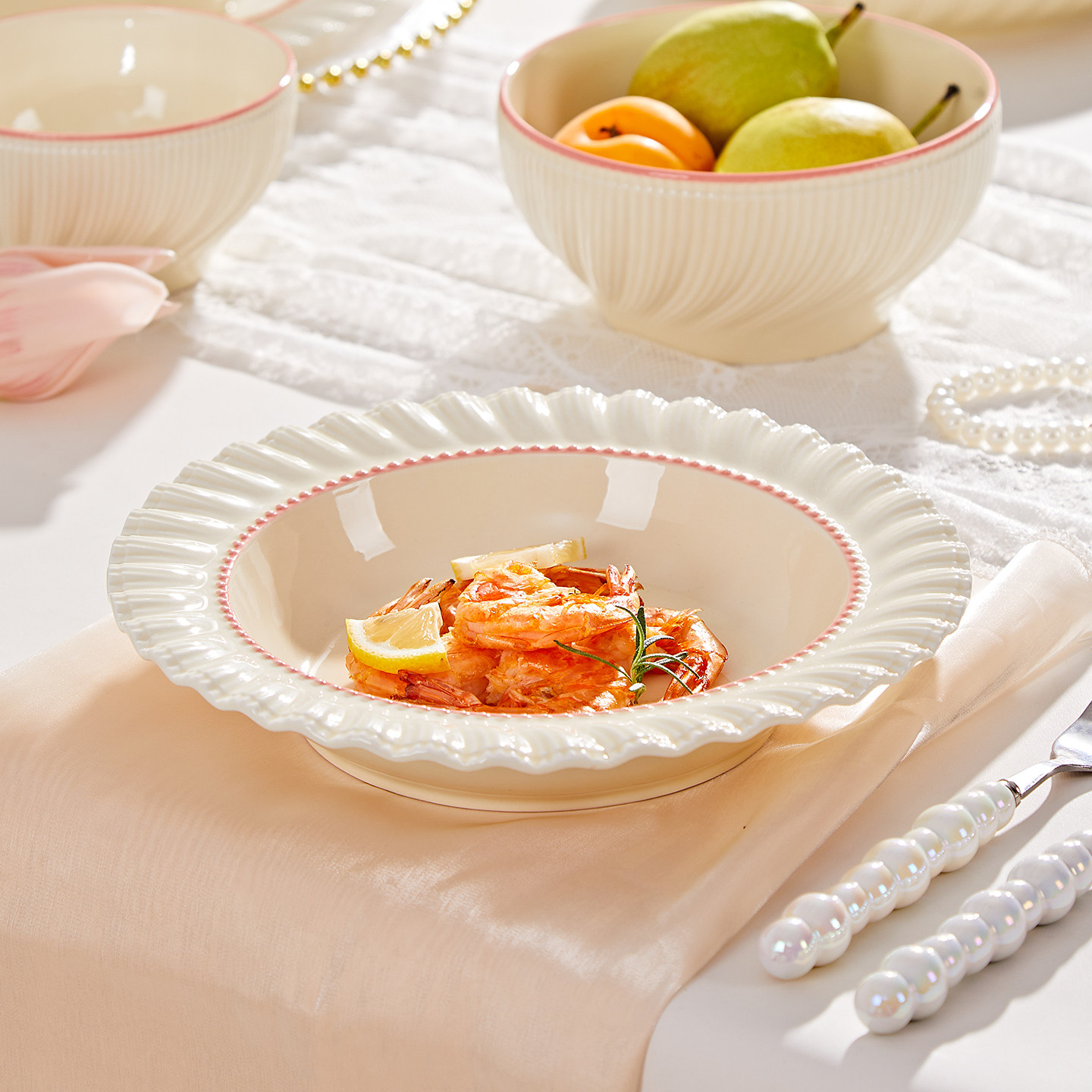 陶瓷盘子菜盘家用2025新款草帽盘高级感釉下彩深盘奶油风餐具餐盘