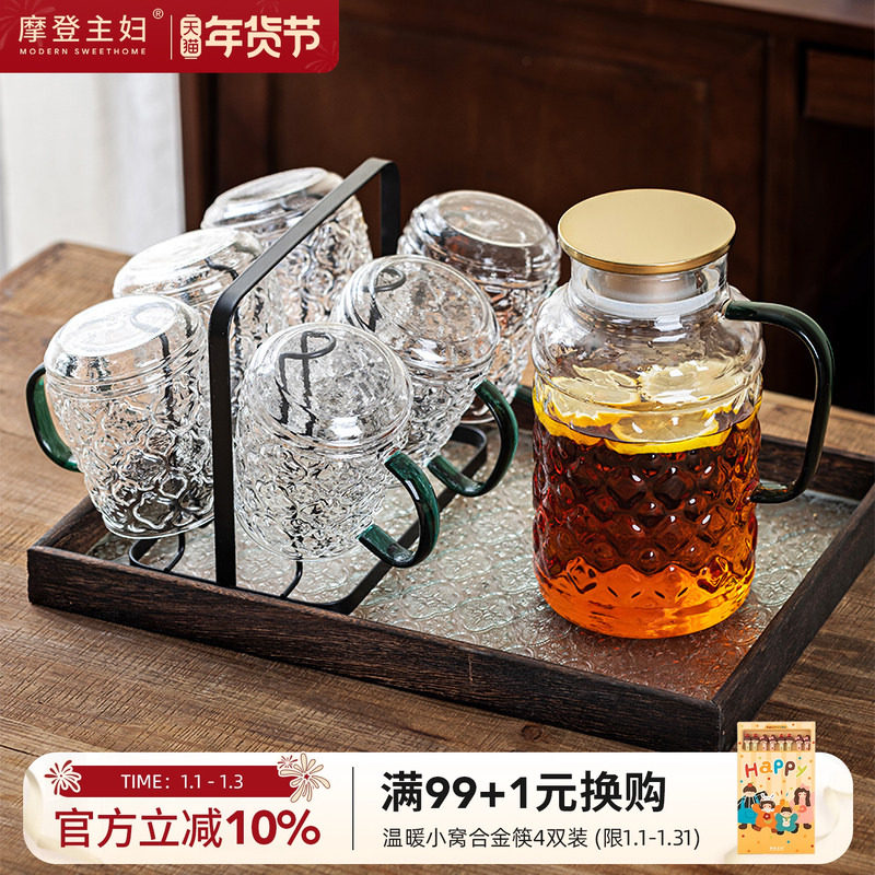 摩登主妇海棠花玻璃冷水壶耐高温杯子家用水杯凉水壶杯具茶壶套装