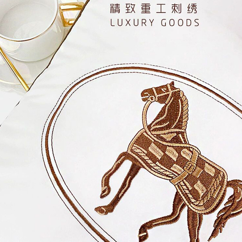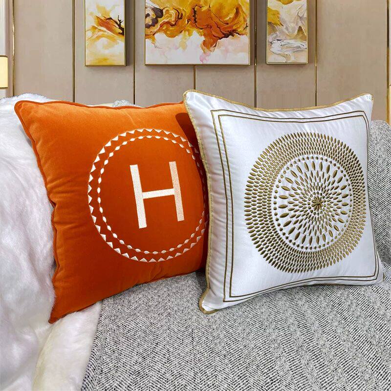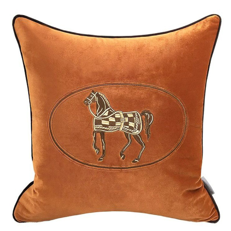 欧式丝绒大牌办公室抱枕客厅沙发床头轻奢爱马绣花抱枕套靠垫靠枕