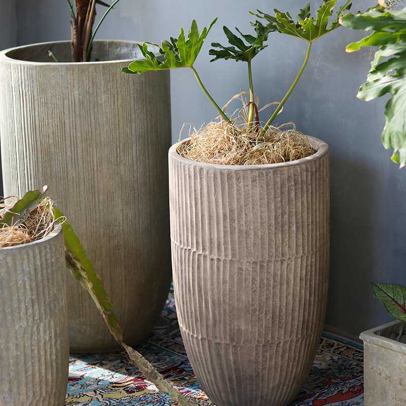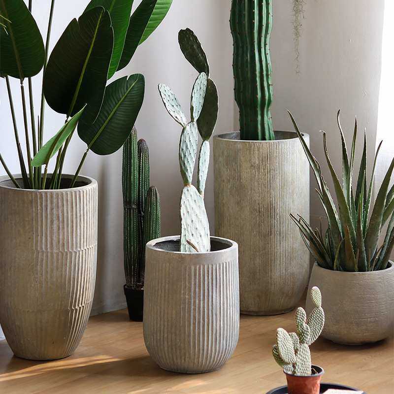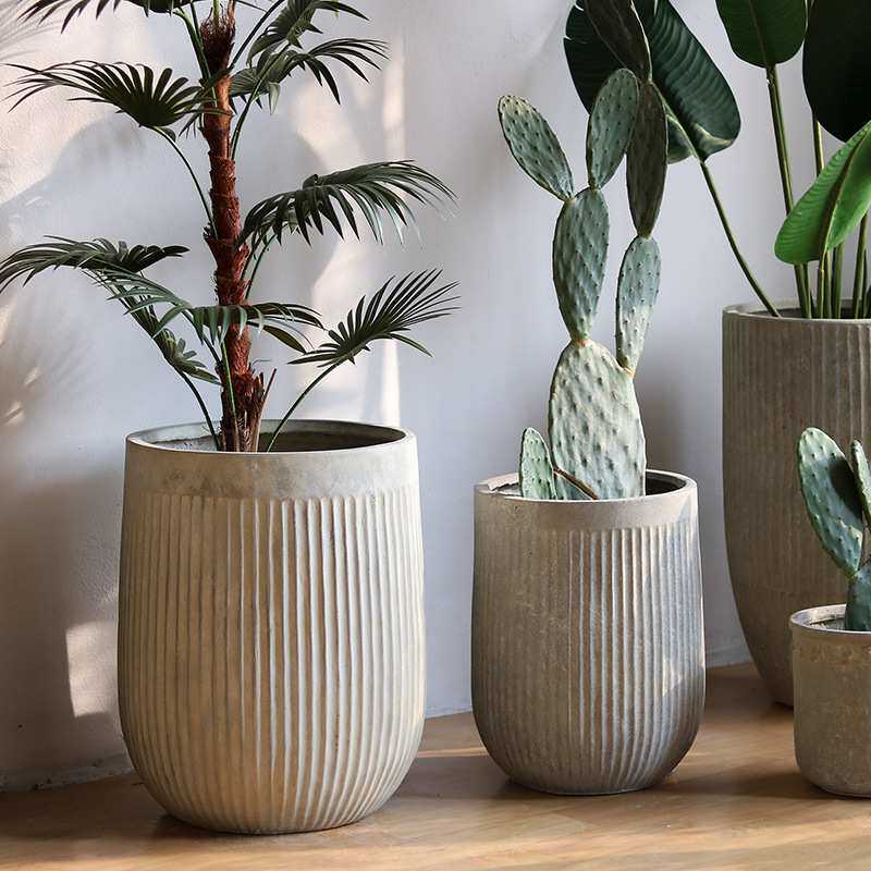 复古大号落地花盆镁泥透气高款筒形花器客厅花园商场装饰绿植盆
