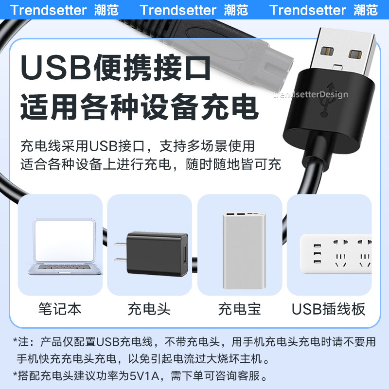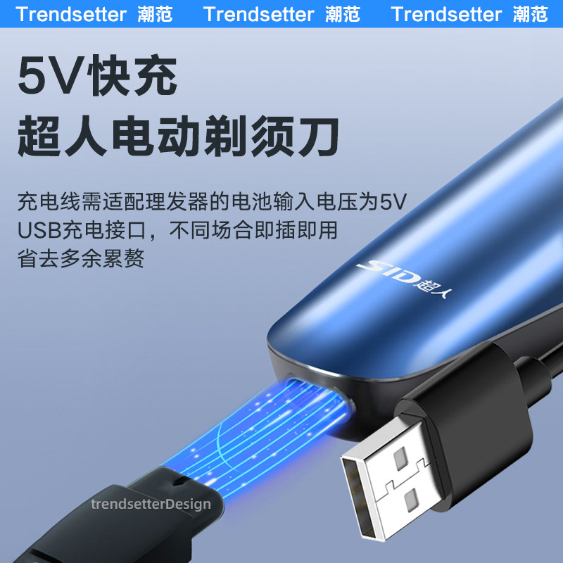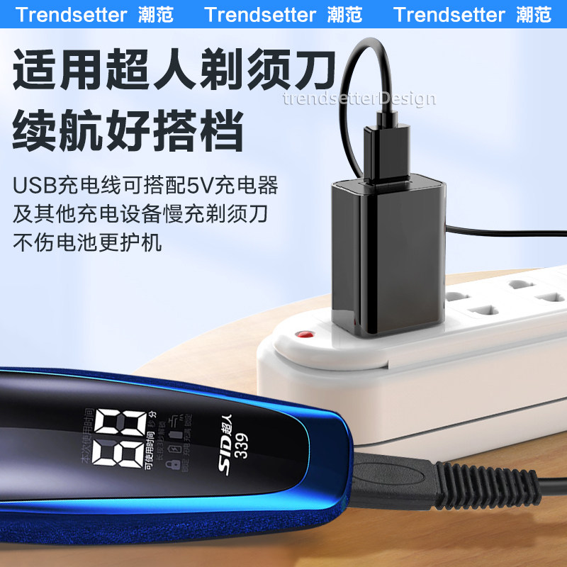 适用SID超人剃须刀充电线充电器RS3750/335/337/338/339/385/SA647/972/7257刮胡刀USB电源线配件