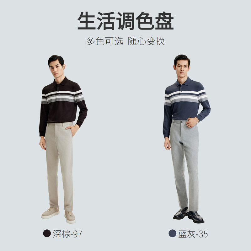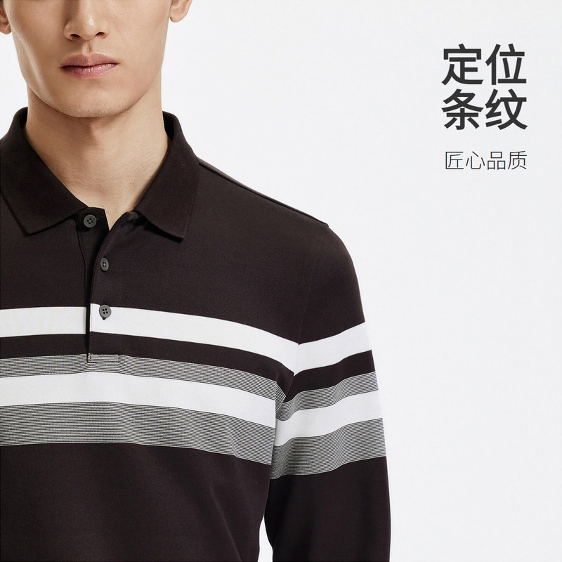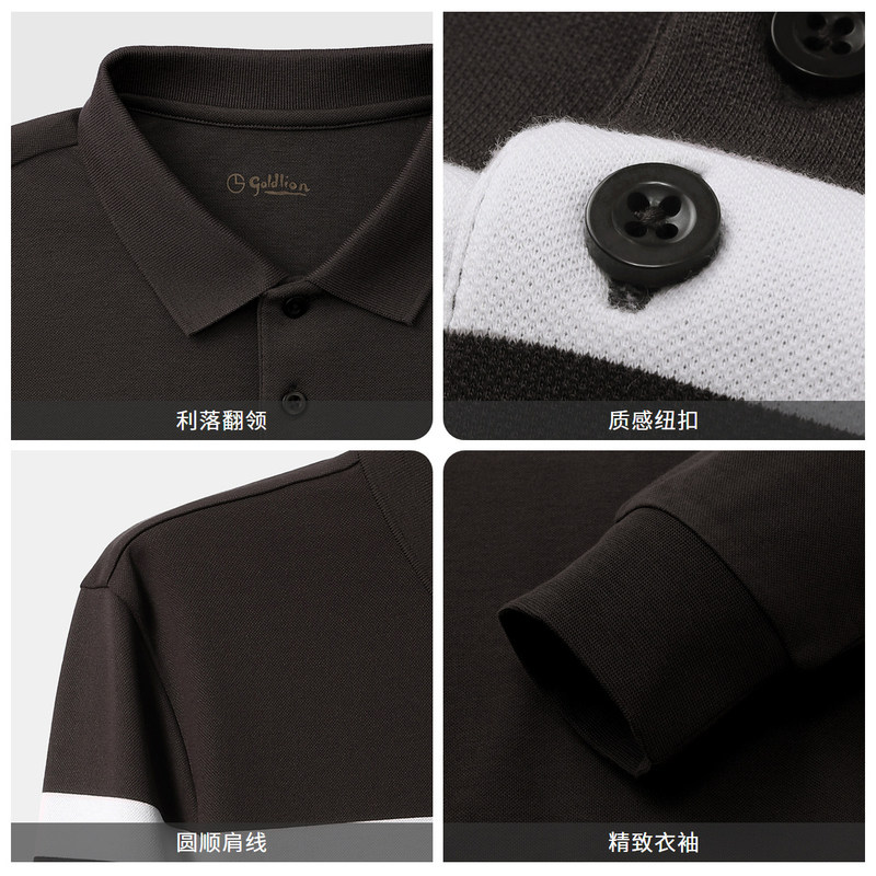 【长绒棉】金利来秋冬新款男士长袖T恤商务条纹翻领POLO衫上衣男