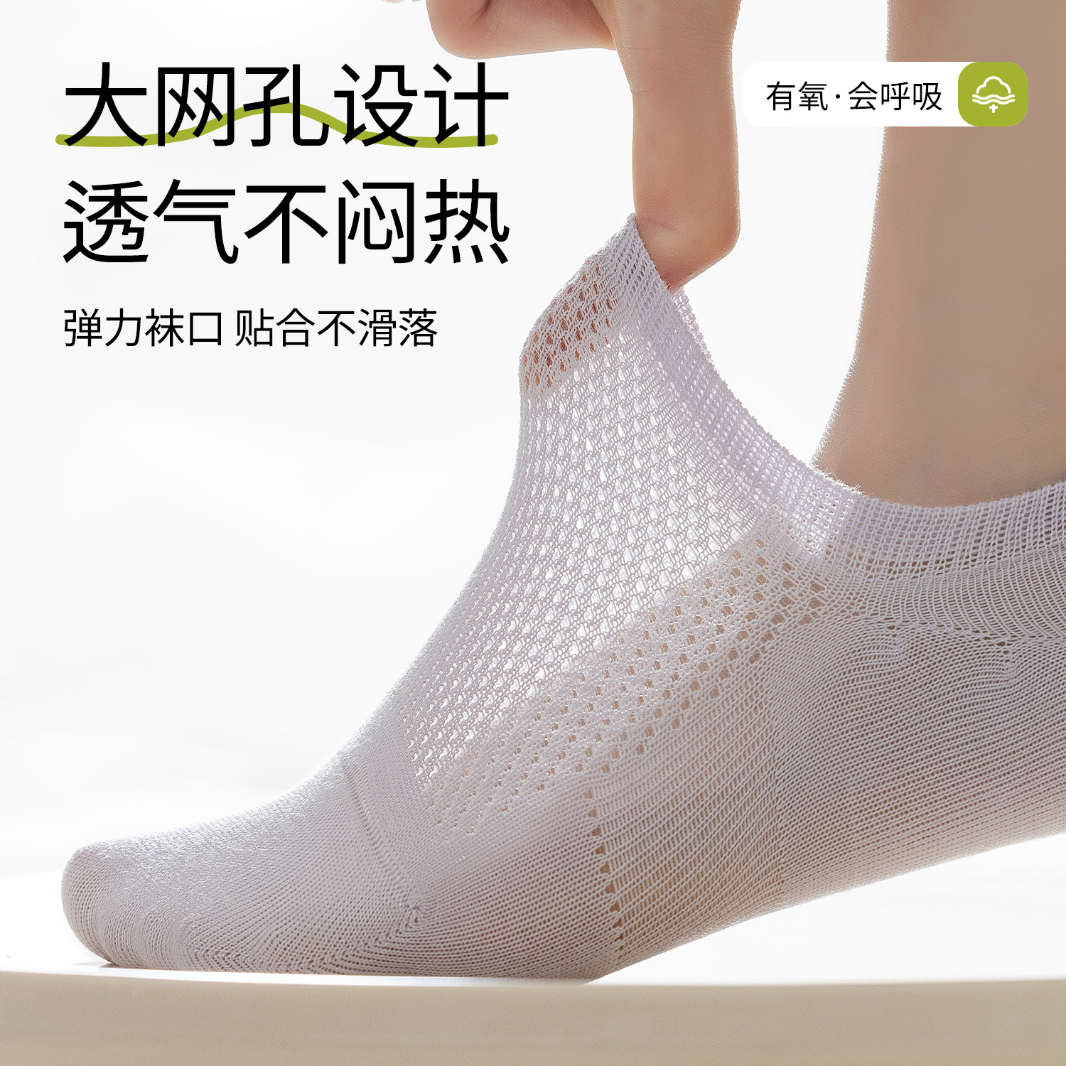 禾素时代船袜男士防臭袜网眼不掉跟透气棉袜女抗菌袜夏秋薄款袜子