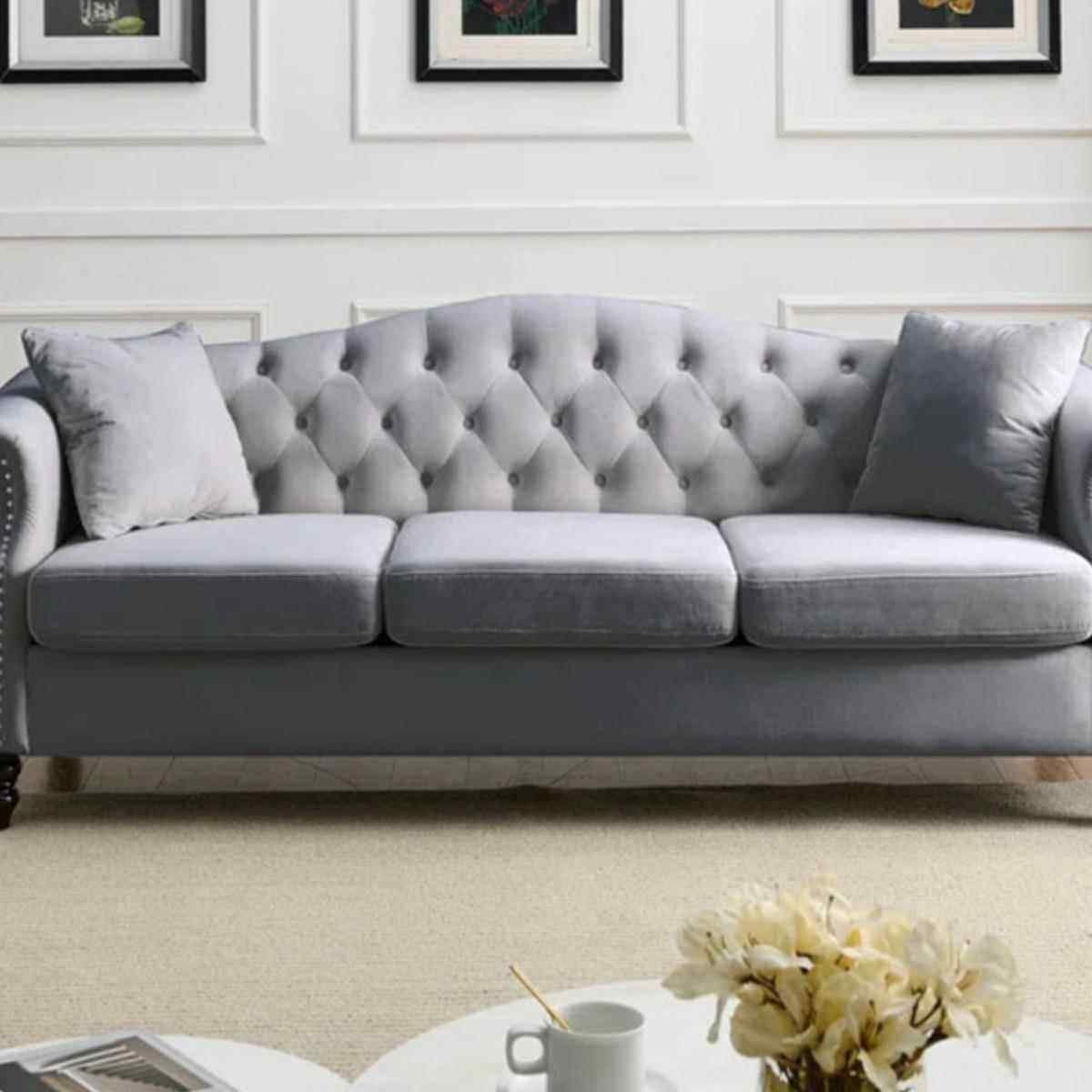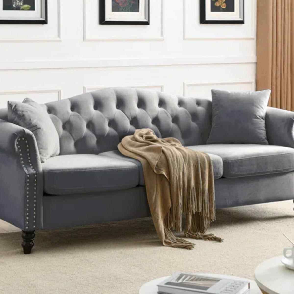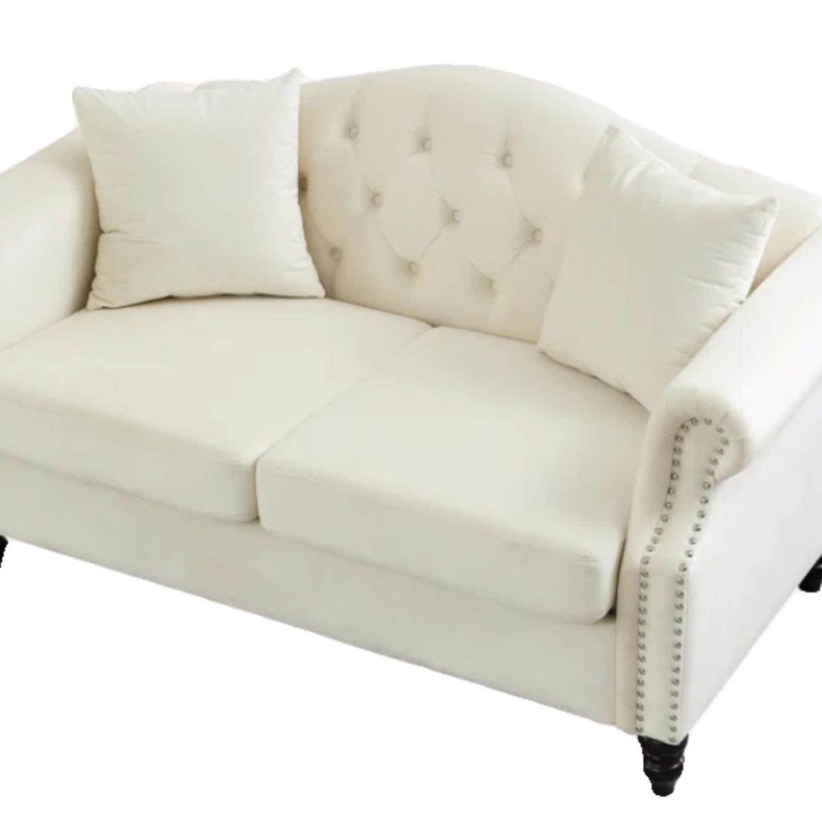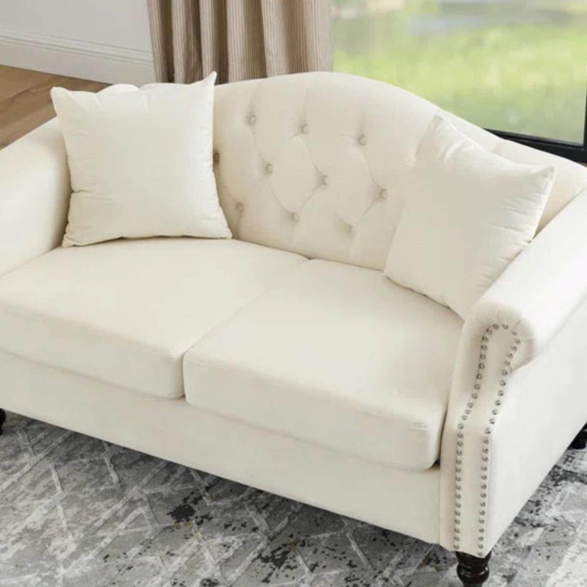 法式中古米白色布艺拉扣沙发美式乡村复古小户型别墅新款直排沙发