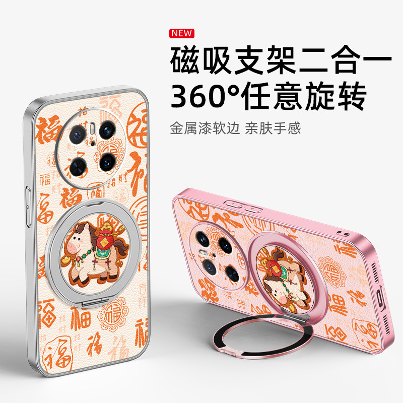 马年福适用华为mate80pro手机壳mate70女款mate60pro+小羊皮2026新年新款50磁吸支架40/30防摔硅胶卡通可爱