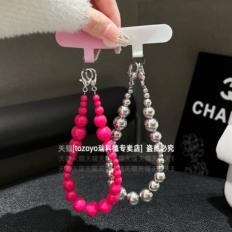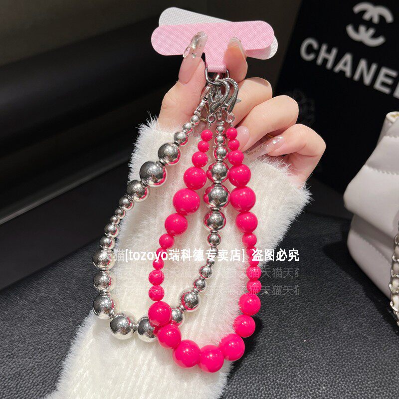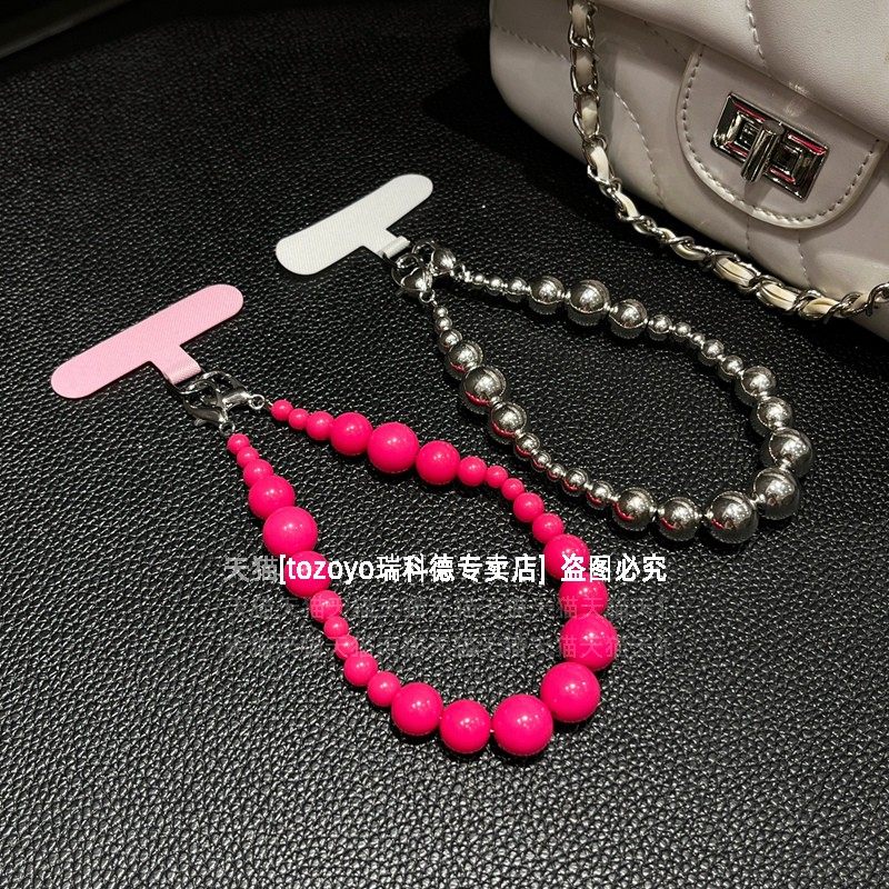 个性串珠手机链时尚网红辣妹腕带手链创意大小珠子手腕挂链可手提链条挂绳小众高级包包挂件挂饰女夹片贴片壳