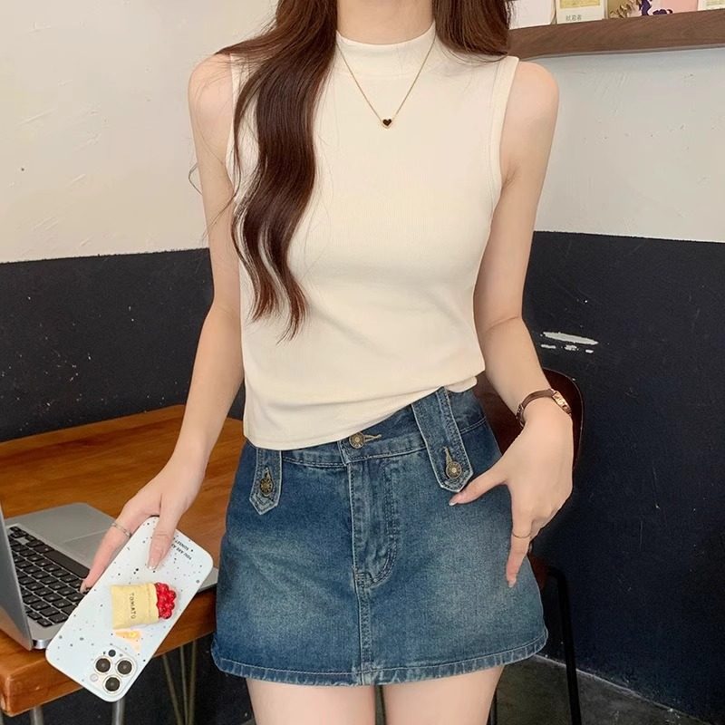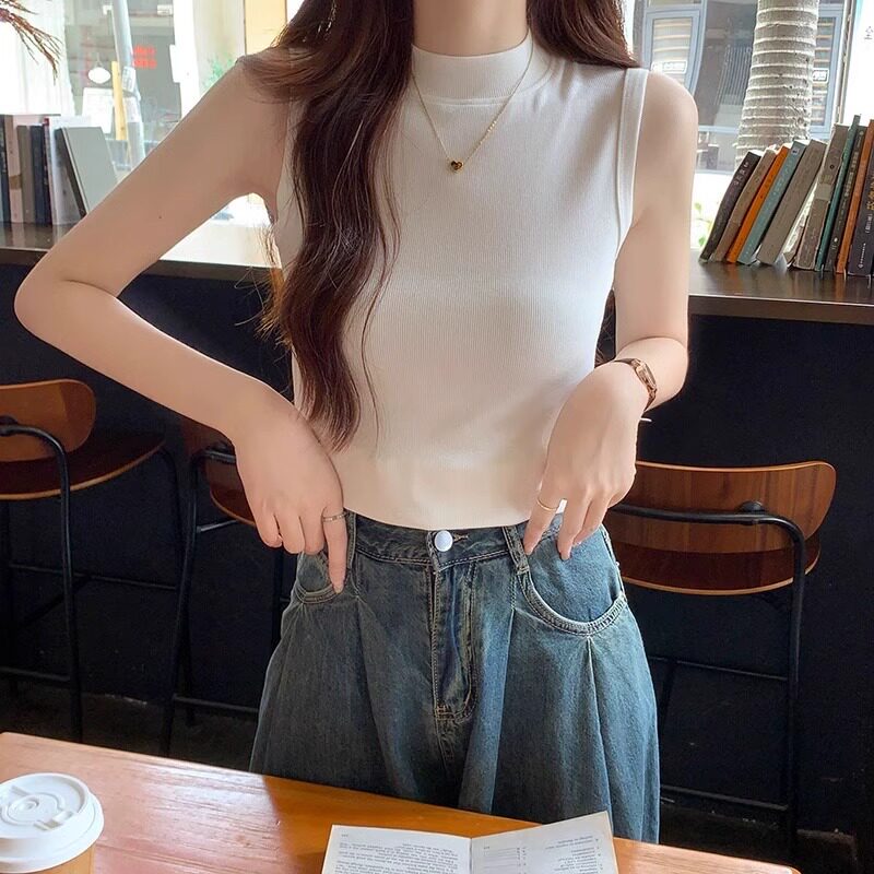 纯欲秋季吊带背心女外穿2024辣妹半高领短款西装内搭无袖上衣工字