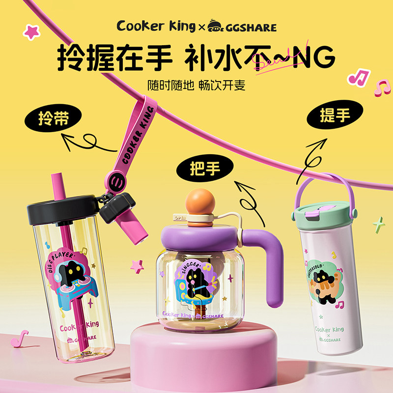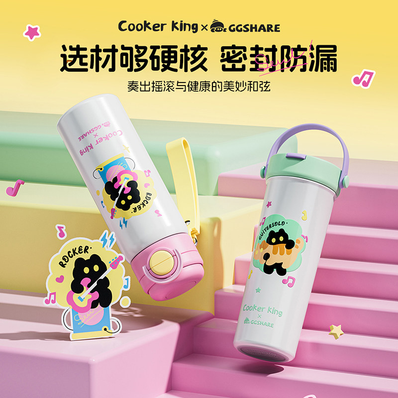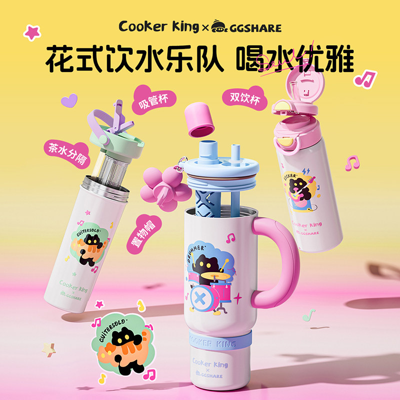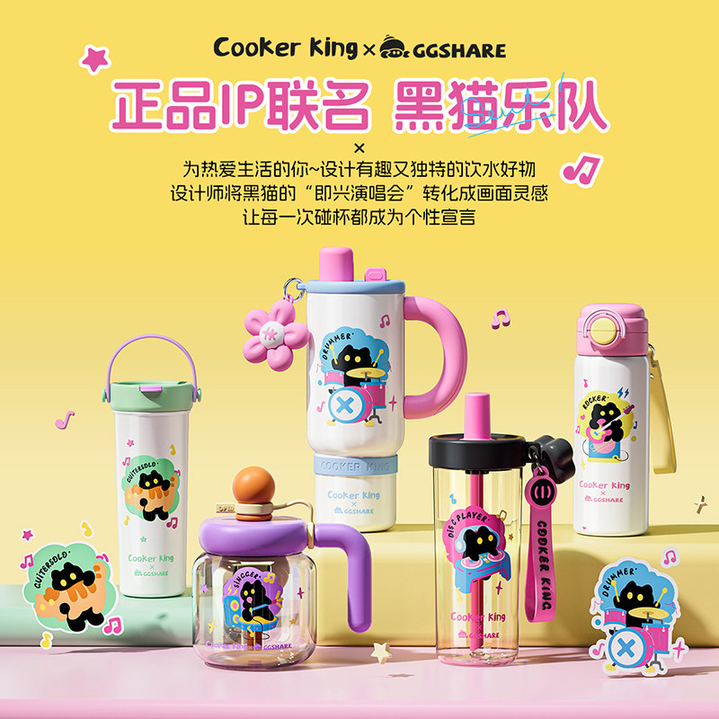 炊大皇吸管杯不锈钢玻璃水杯新款高颜值黑猫乐队联名款儿童专用