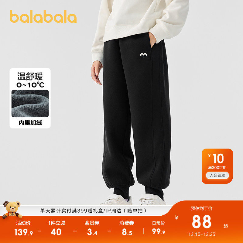 巴拉巴拉童装女童裤子冬装加绒长裤保暖儿童运动舒适束脚时尚百搭