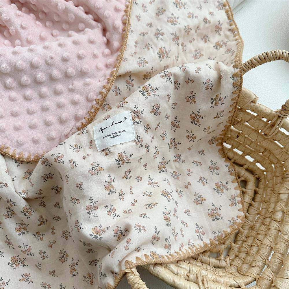 全5373棉纱布儿童豆豆子亲肤盖毯出宝宝行推车小盖四季薄毯毯贝壳钩边