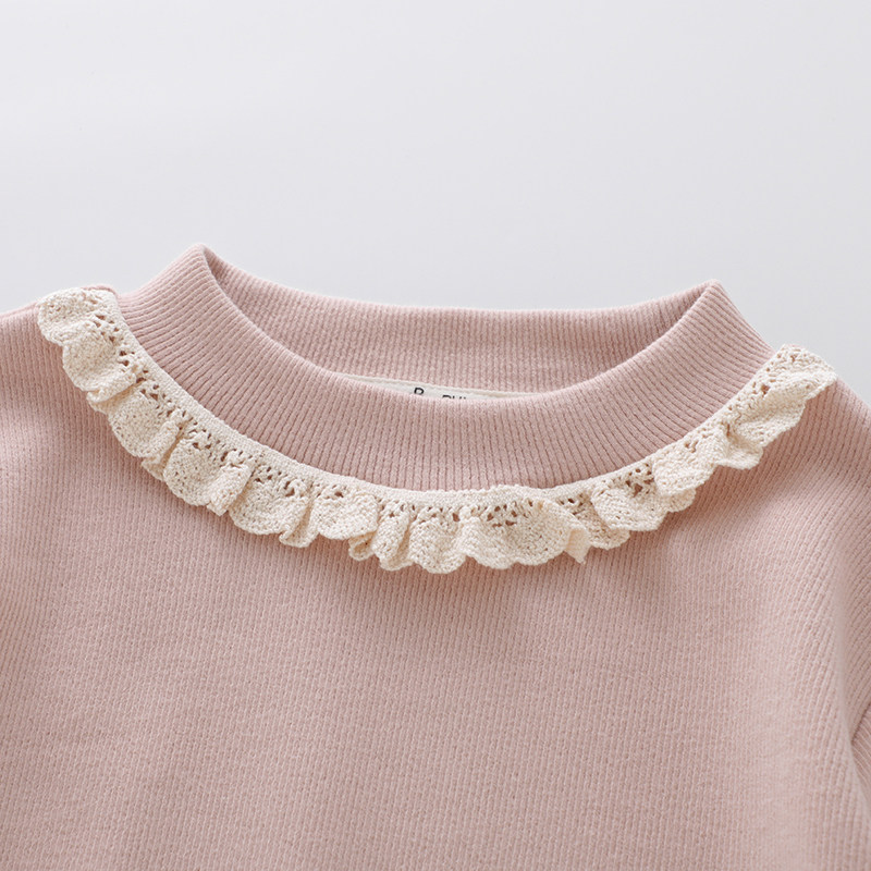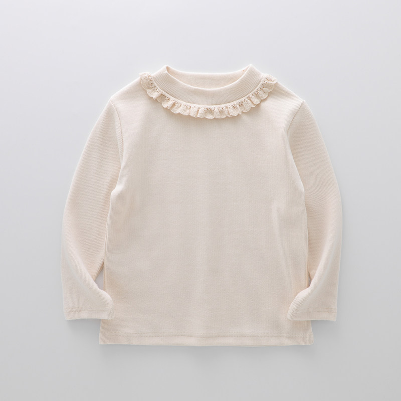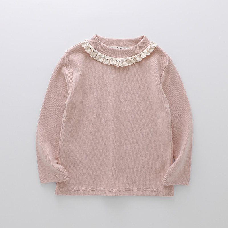 女童蕾丝花边纯棉打底衫女宝宝春秋冬长袖t恤儿童装半高领打底衣