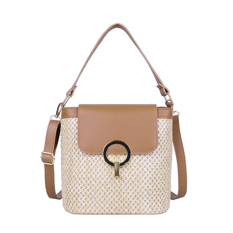 手提女包编织水桶包度假包2024春夏新款斜挎草编包藤编包时尚小包