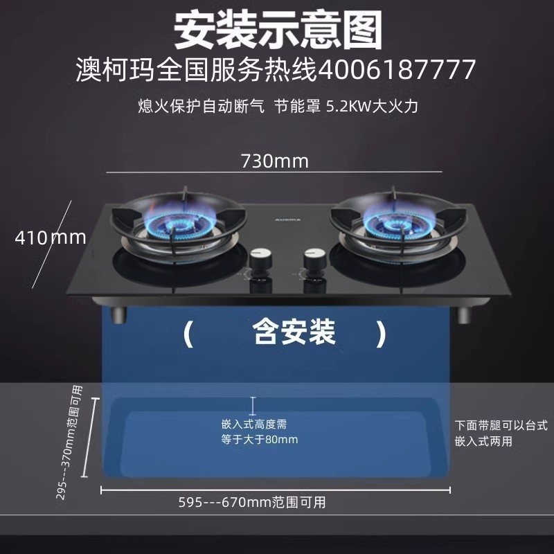 澳柯玛天然气台式嵌燃气灶液化气煤气双灶小开孔大火力电子打火灶
