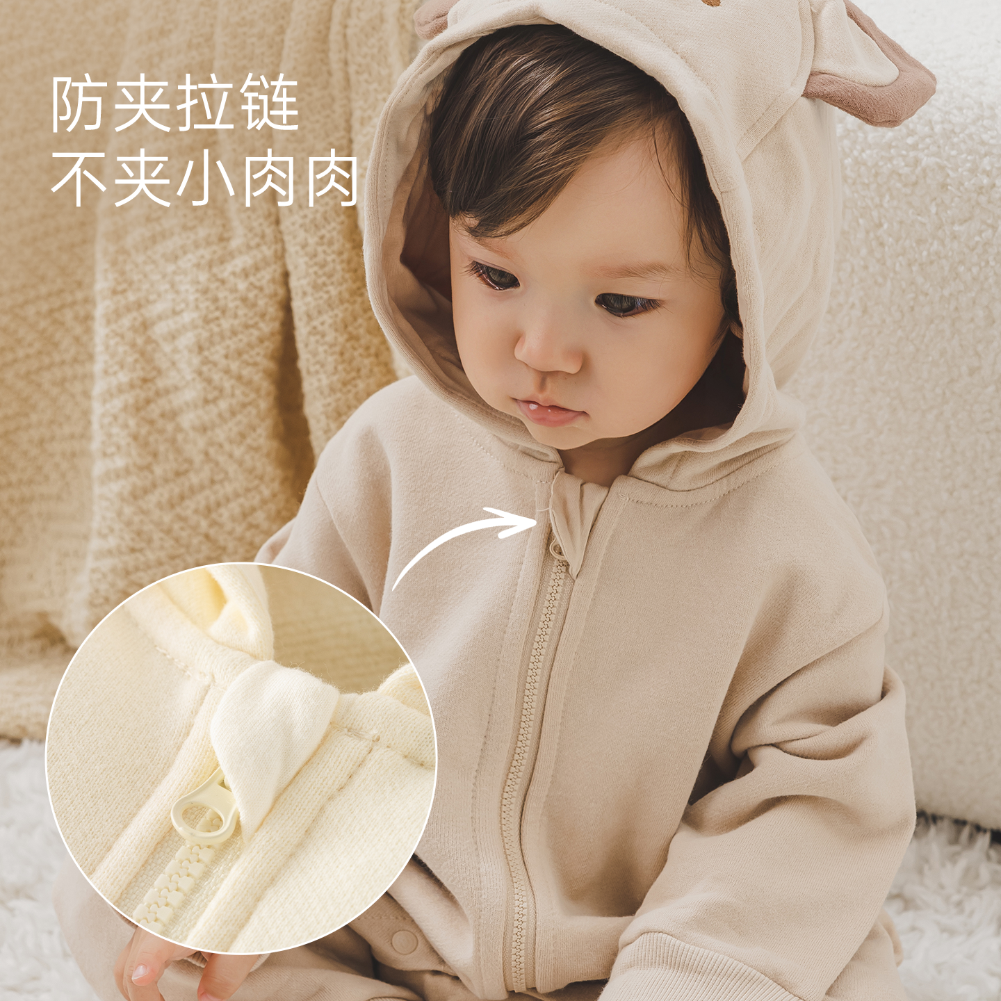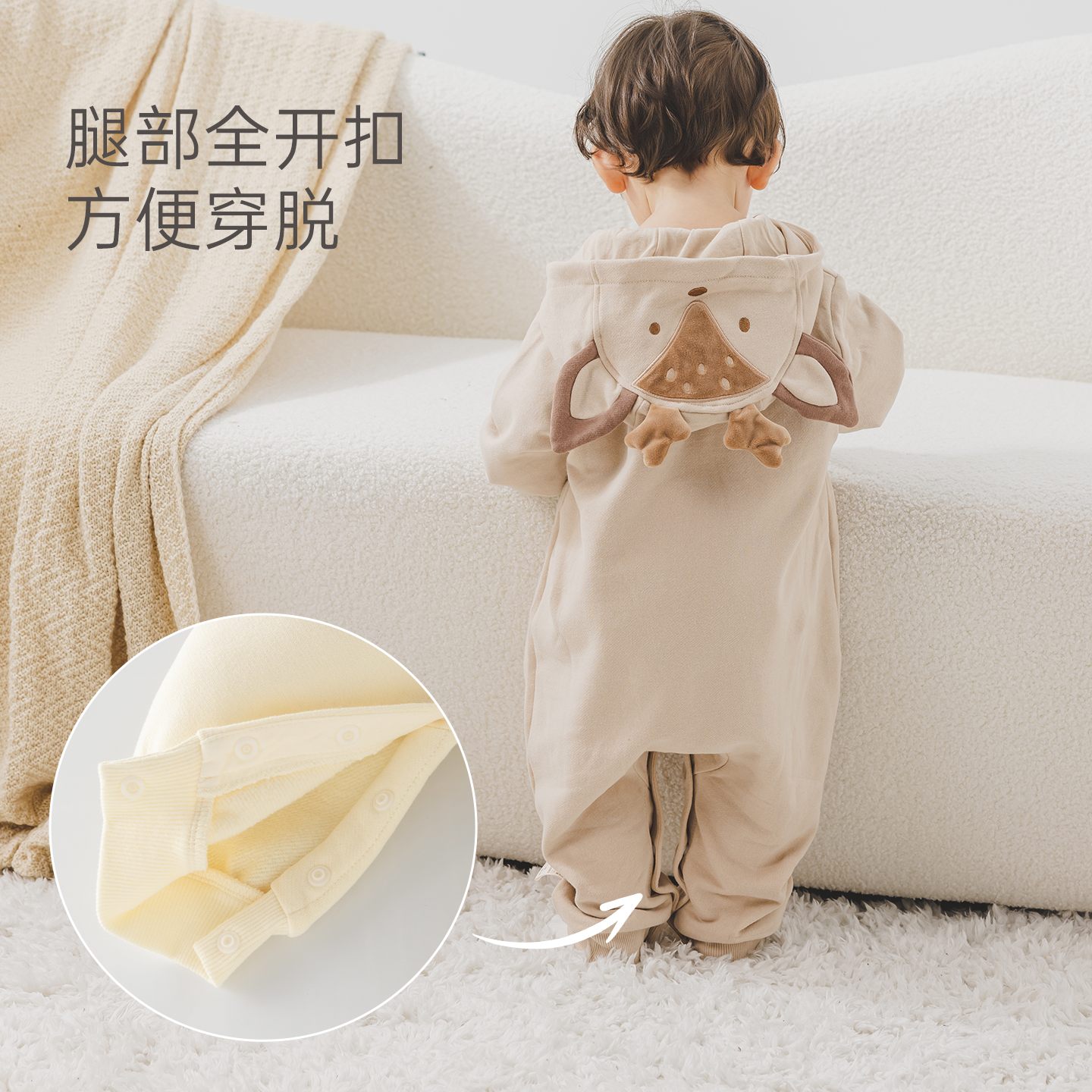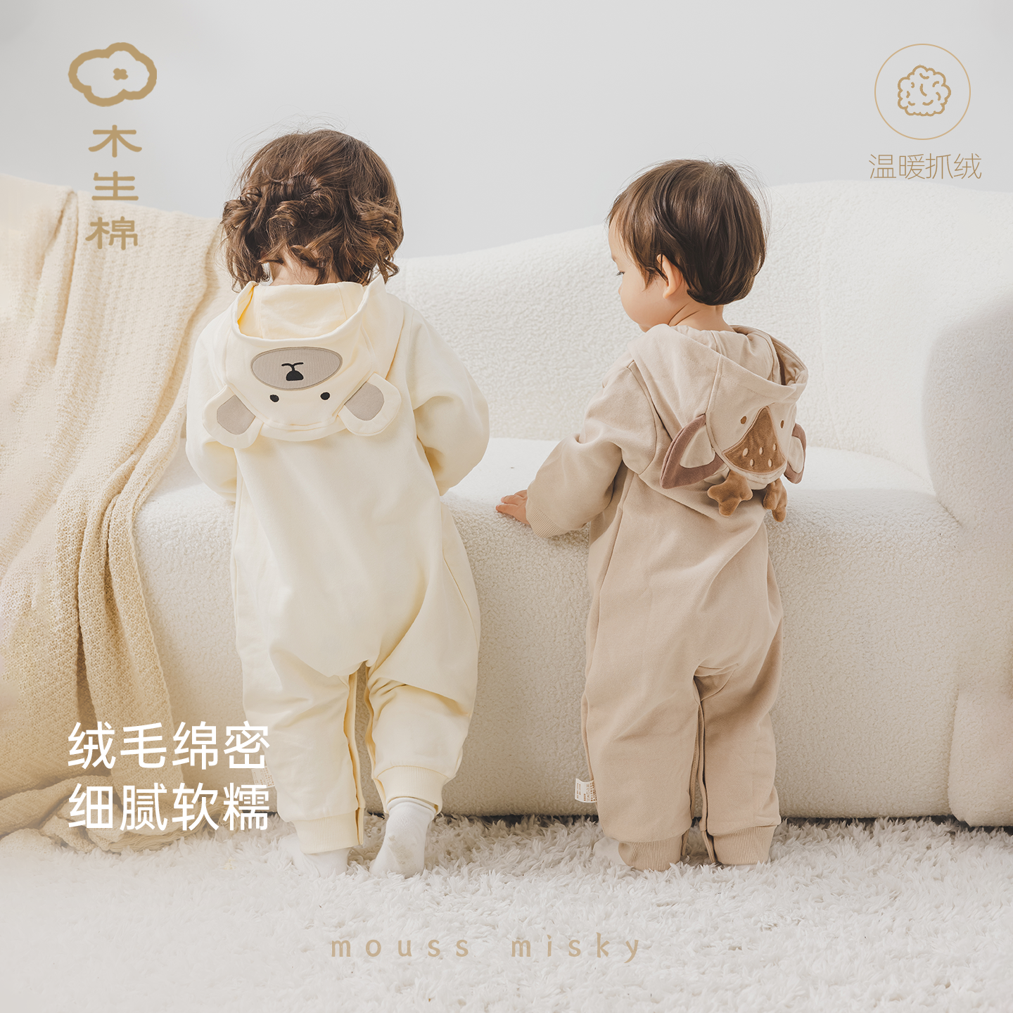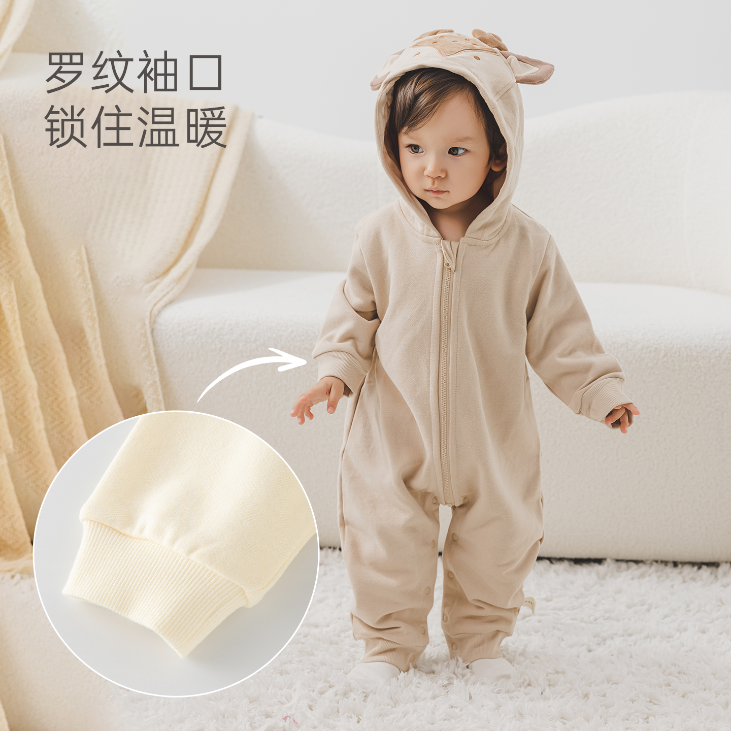 木生棉男女宝宝连帽连体衣春秋季婴儿可爱抓绒卫衣裤居家保暖爬服