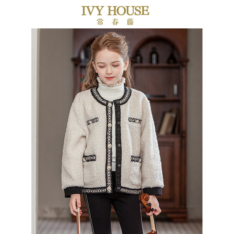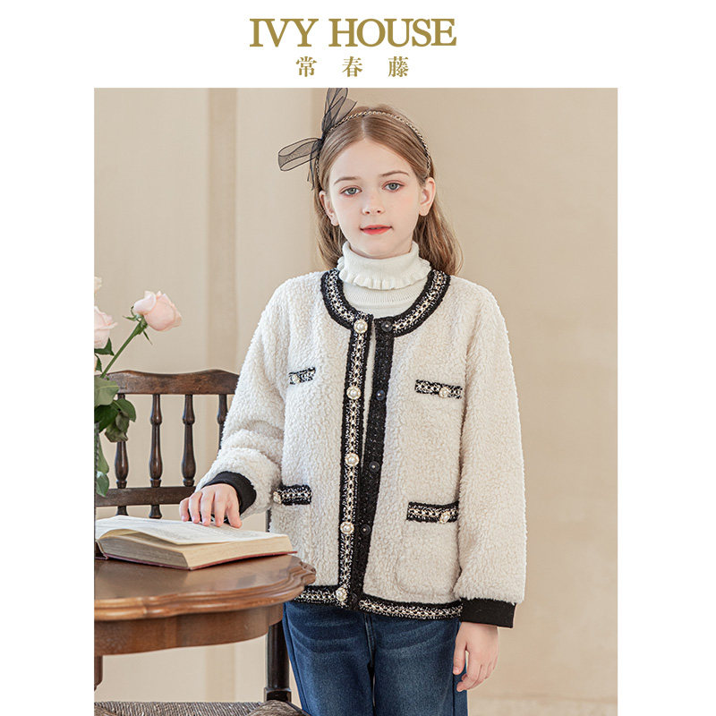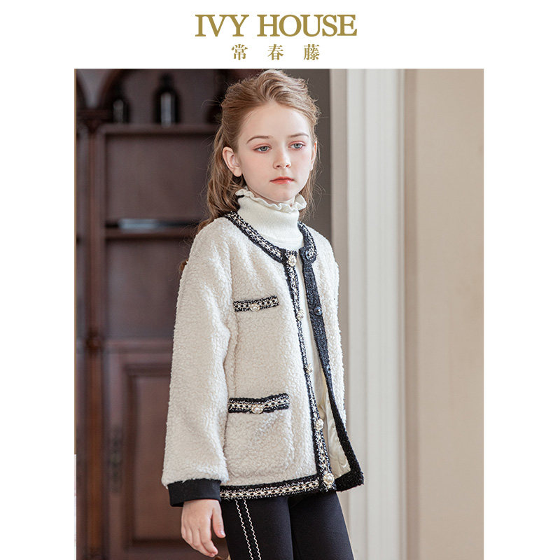 IVY HOUSE常春藤童装女童冬季款 小香风圈圈毛绒外套亲子装洋气