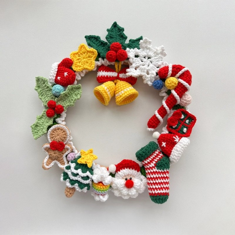 圣诞节花环装饰礼物小礼品毛线手工编织diy场景布置手工制作钩针
