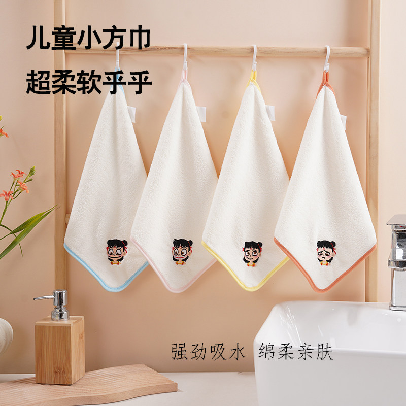 儿童毛巾洗脸家用幼儿园男女童宝宝柔软吸水方形非纯棉面巾不掉毛