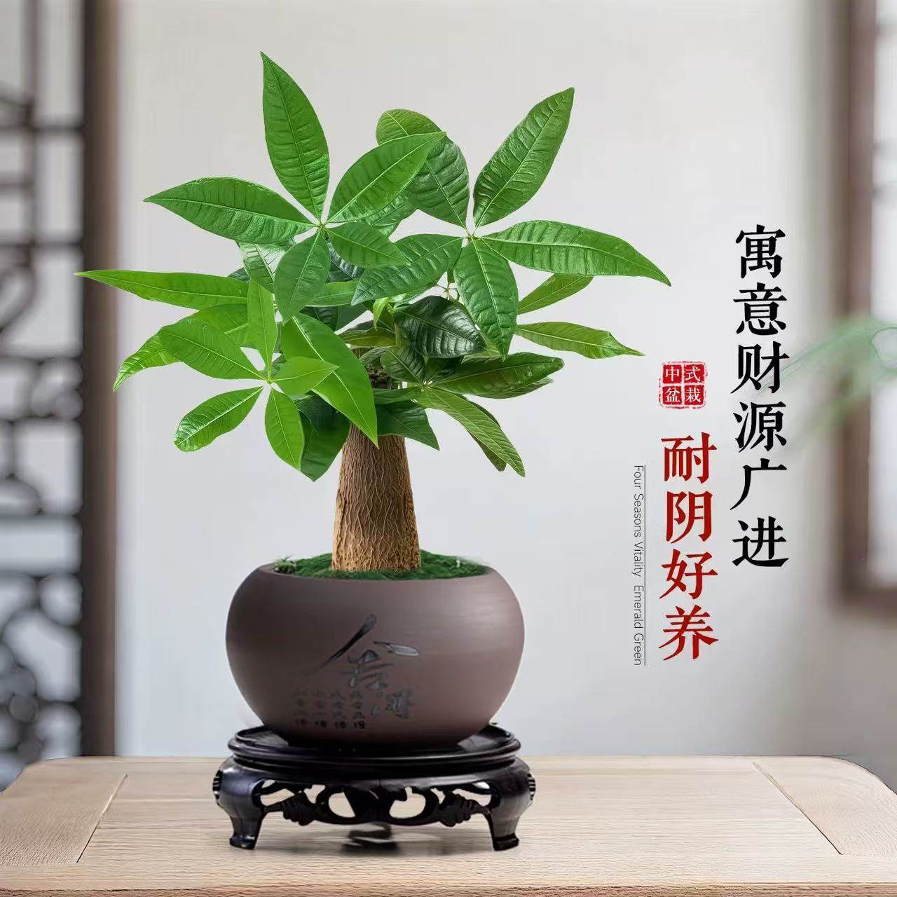 发财树绿植适合客厅室内办公室桌面四季好养旺宅植物吸甲醛小盆栽