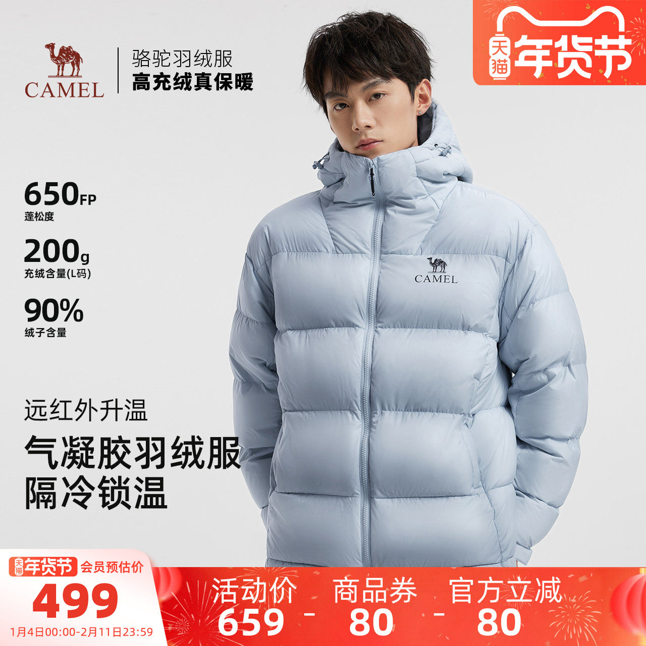 王俊凯同款骆驼火山羽绒服男冬季加厚保暖短款面包防寒男装外套