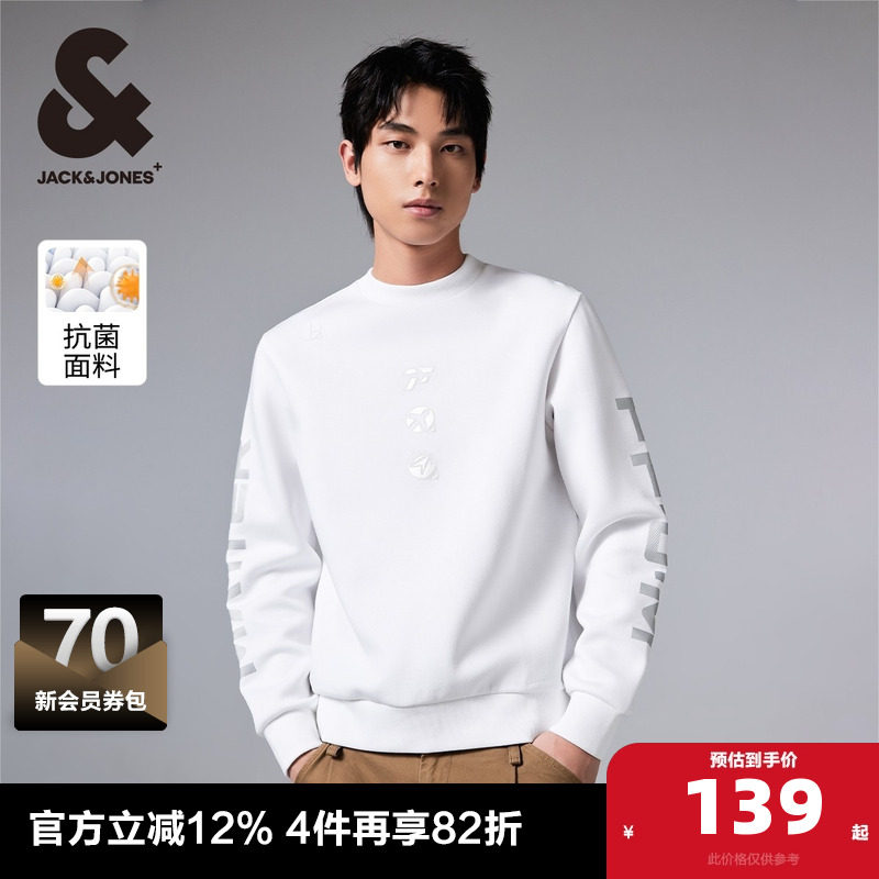 杰克琼斯24秋季新款直筒休闲纯色基础抗菌衣服罗纹圆领卫衣男装