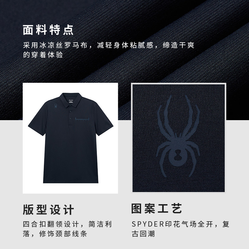 SPYDER蜘蛛春夏男子SKI LIFE运动短袖T恤翻领商务POLO衫24CS413M