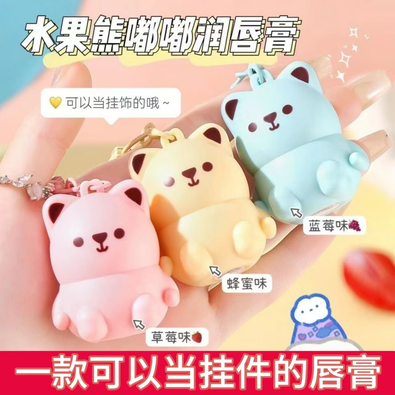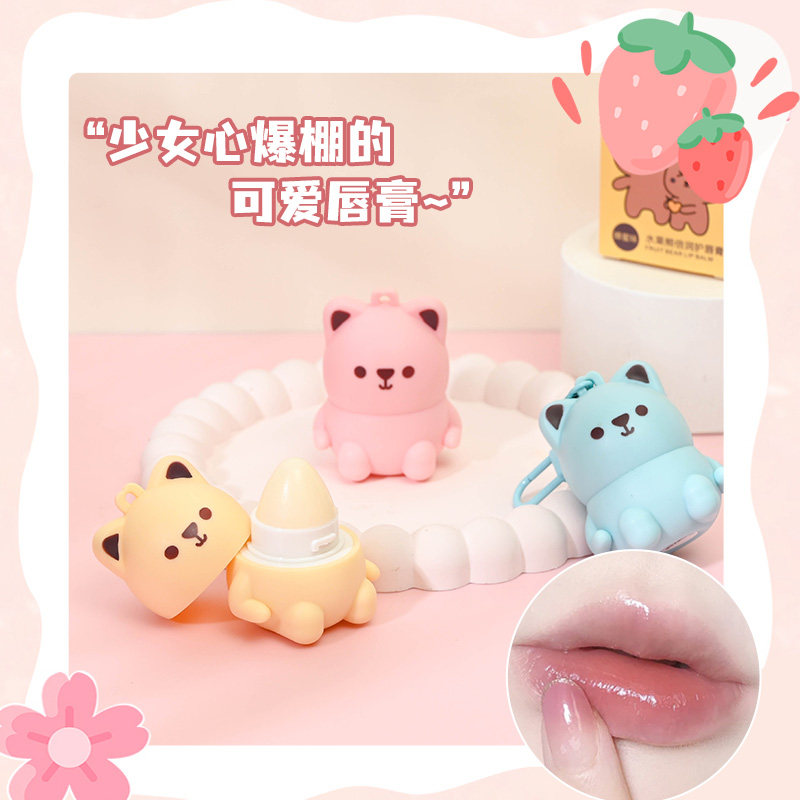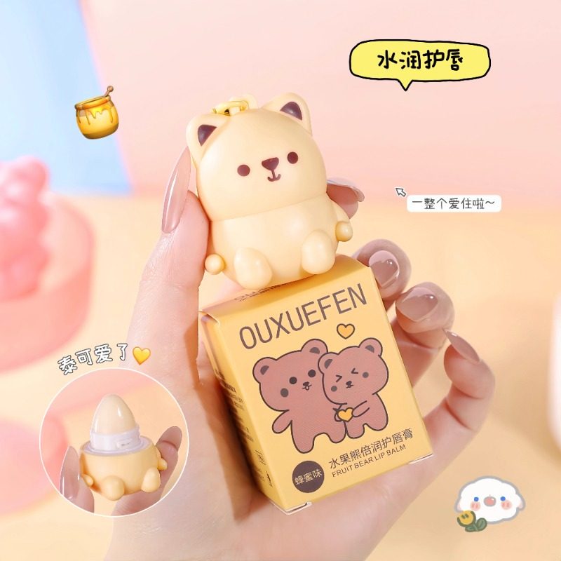 水果熊倍润唇膏儿童滋润保湿防干裂淡化唇纹宝宝挂件润唇膏补水
